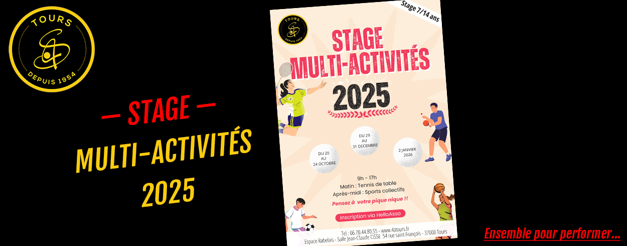 • Nous Rejoindre • STAGES _ Stages - Stages Multi-Activités - Stages Promoping - Stages Ping EN SAVOIR + SECTION SPORTIVE_ Section sportive Notre Dame La Riche EN SAVOIR + S'INSCRIRE_ S'inscrire - Télécharger le formulaire d'inscription - Les Tarifs EN SAVOIR +