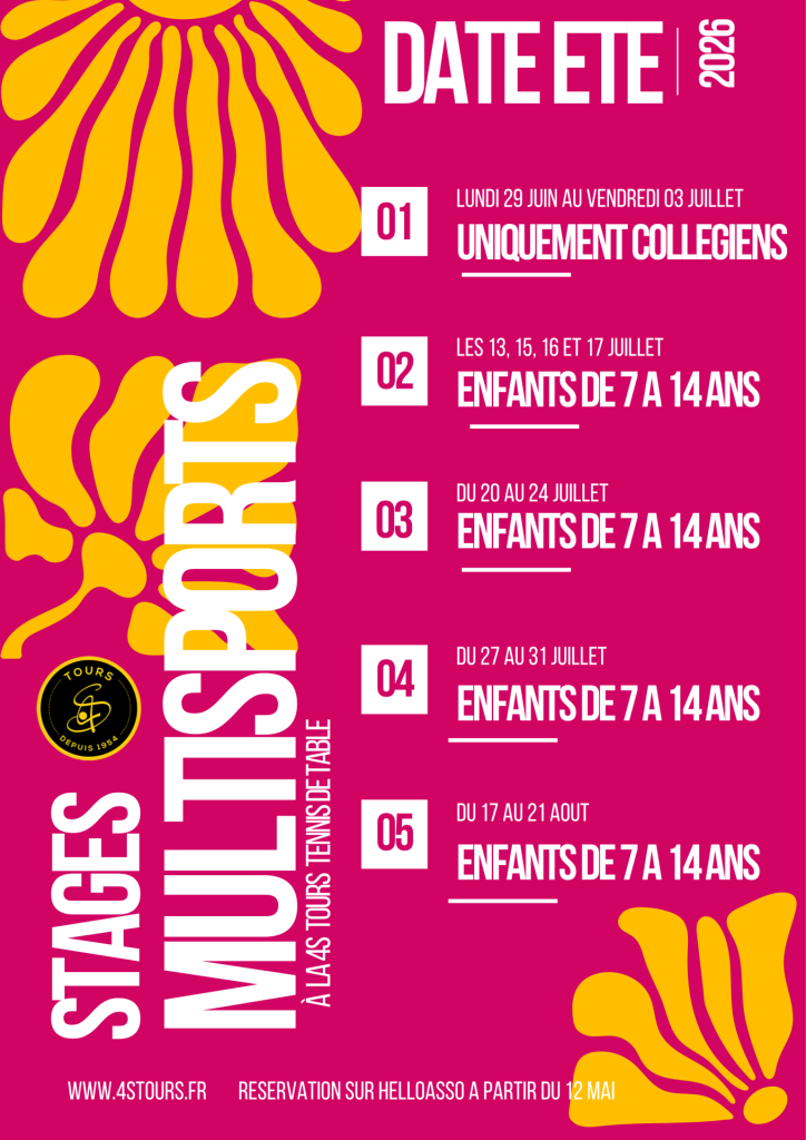 Lien HelloAsso pour l’inscription : https://www.helloasso.com/associations/4s-tours-tt/evenements/stage-multi-sports-avril-2026-2