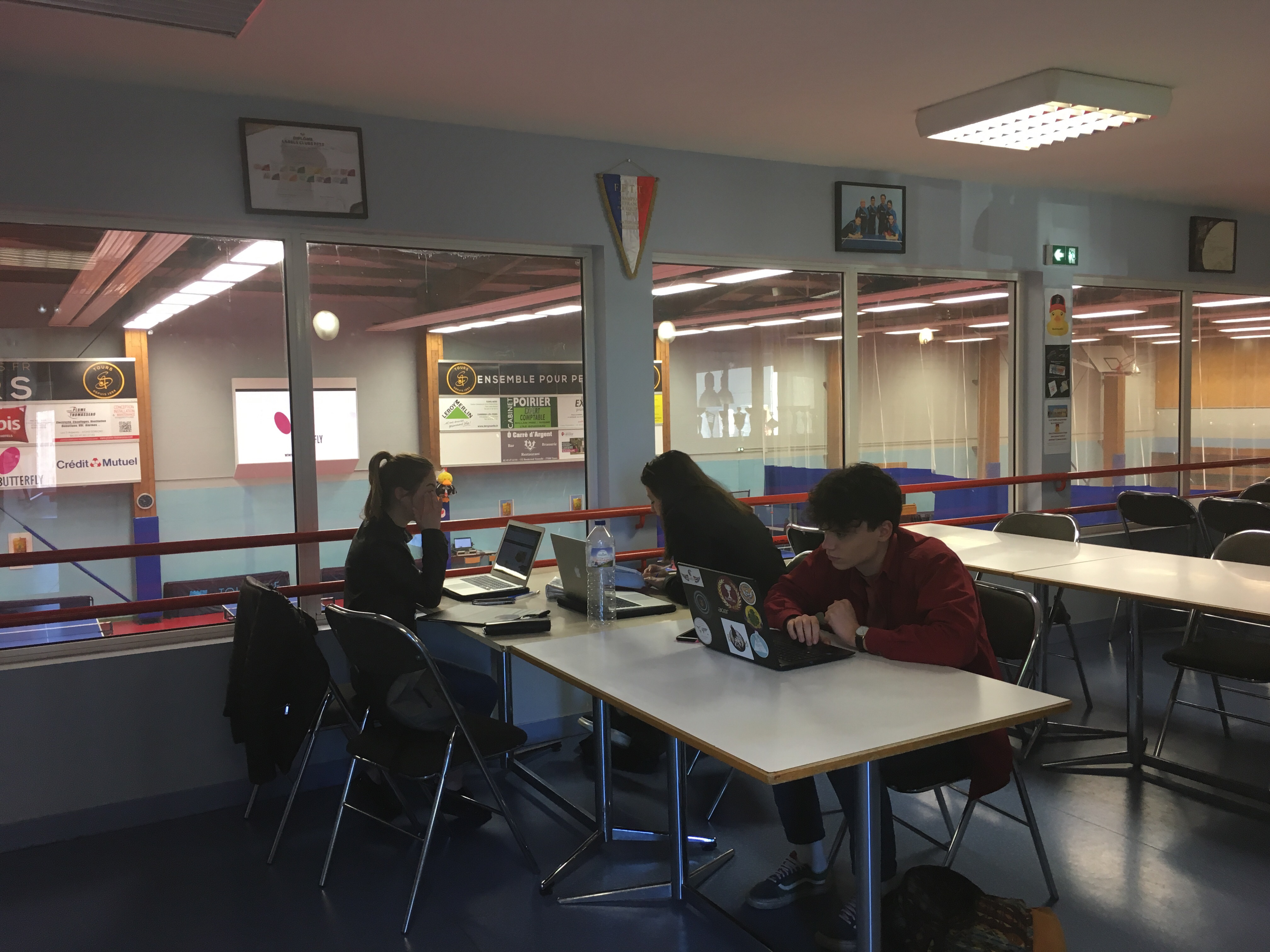 Autour de nos trois entraîneurs, le club s’est forgé une réputation de club formateur en Tennis de Table. Mais notre club est bien plus en accueillant de nombreux stagiaires ou jeunes volontaires du service civique. Actuellement, trois jeunes qui suivent des parcours différents, soit à Notre Dames La Riche soit à l’ESCEM, effectuent un stage de deux mois dans notre structure pour renforcer notre communication et notre présence sur les réseaux sociaux et pages où les internautes se retrouvent! En liaison avec Alexandre deux d’entre travaillent sur le Tournoi Inter-Entreprises et la commission partenariat!