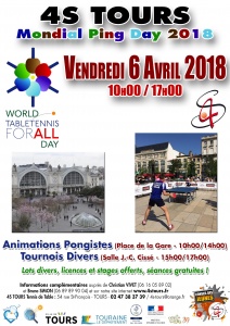 Cela devient un rendez-vous incontournable : La journée mondiale du ping! La 4S Tours y participe le vendredi 6 avril de 10h00 à 14h00 place de la gare de Tours et de 15h00 à 17h00 avec les écoles dans notre salle…