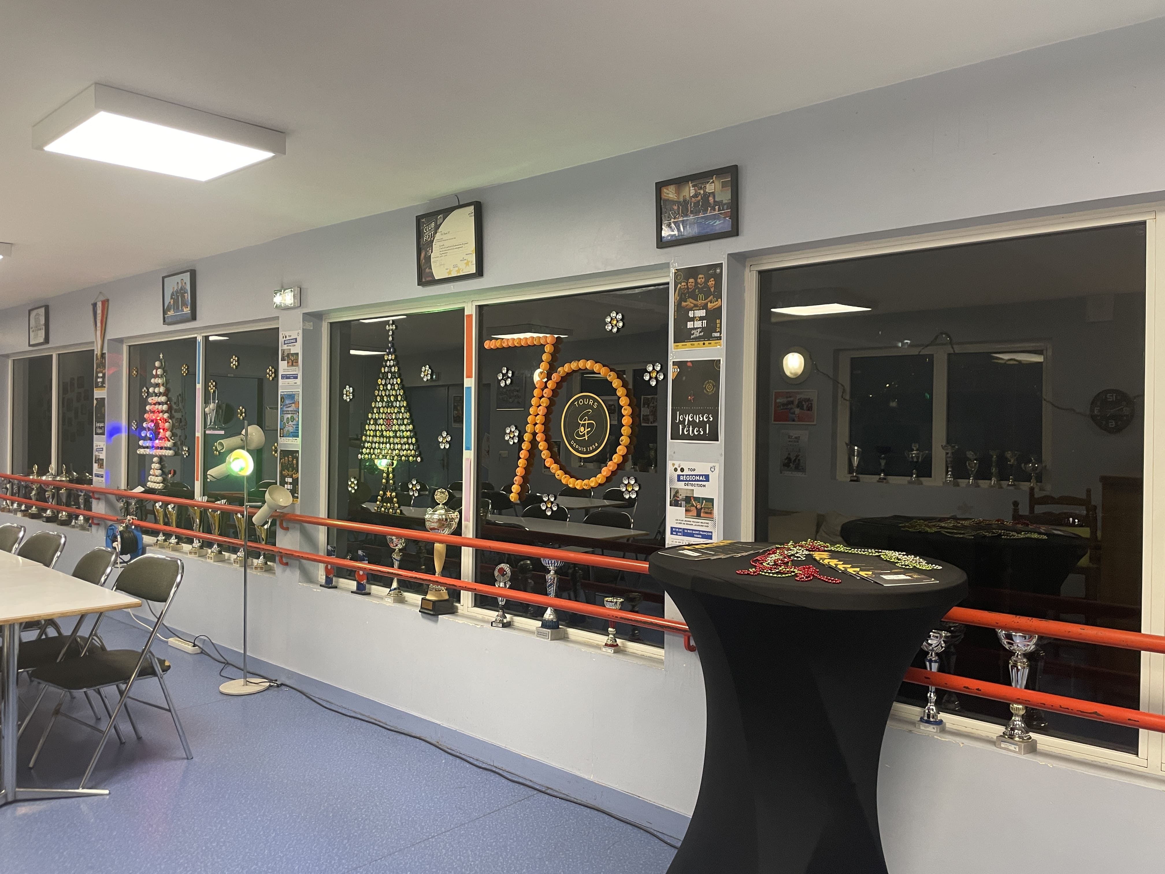 Avec beaucoup de patience, discrètement (oui cela lui arrive) il a décoré le club house pour les fêtes et janvier tout en annonçant notre jubilé de platine des 70 ans!