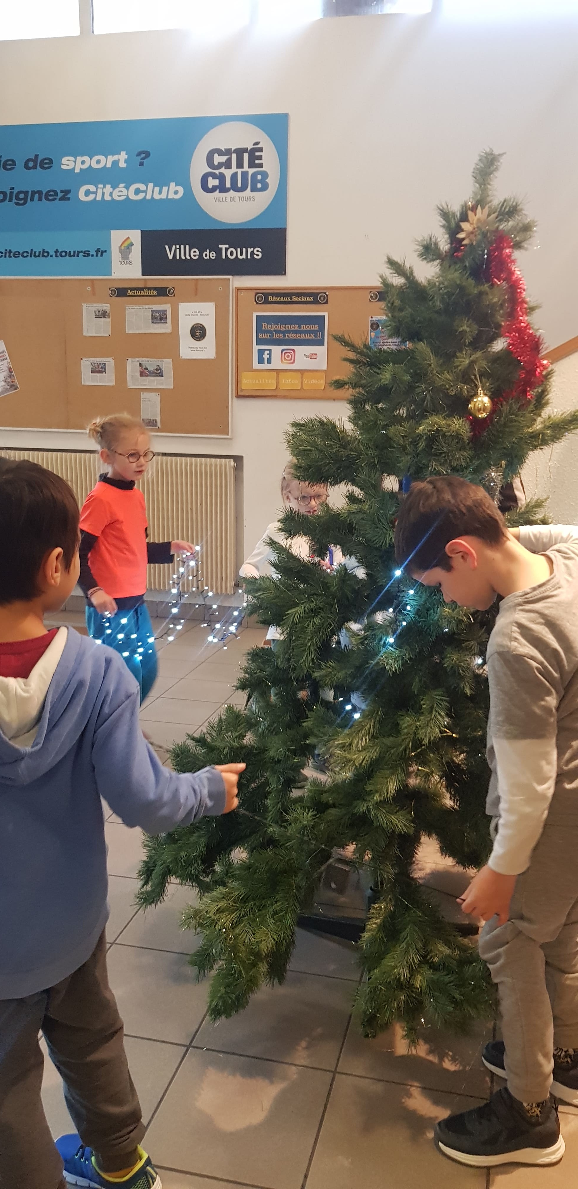 Avec Laétitia et nos jeunes encadrants, les jeunes du groupe 4/7 ans ont préparé Noël en décorant le hall avec notre sapin