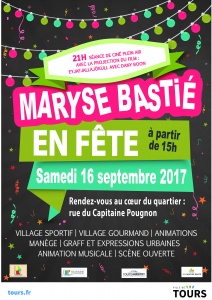 Dans ce petit village de Maryse Bastié-Tonnellé, les associations à l’initiative de la Ville de Tours et des bailleurs vous invitent à faire la fête et à mieux se connaitre. Plusieurs milliers d’habitants et pas assez de relations entre les acteurs locaux et les résidents. L’occasion est belle de se retrouver le 16 septembre de 15h à 20h au cœur de notre quartier rues Maryse Bastié, Merlusine et Capitaine Pougnon pour faire la fête et prolonger la soirée autour d’un film avec Dany Boon…