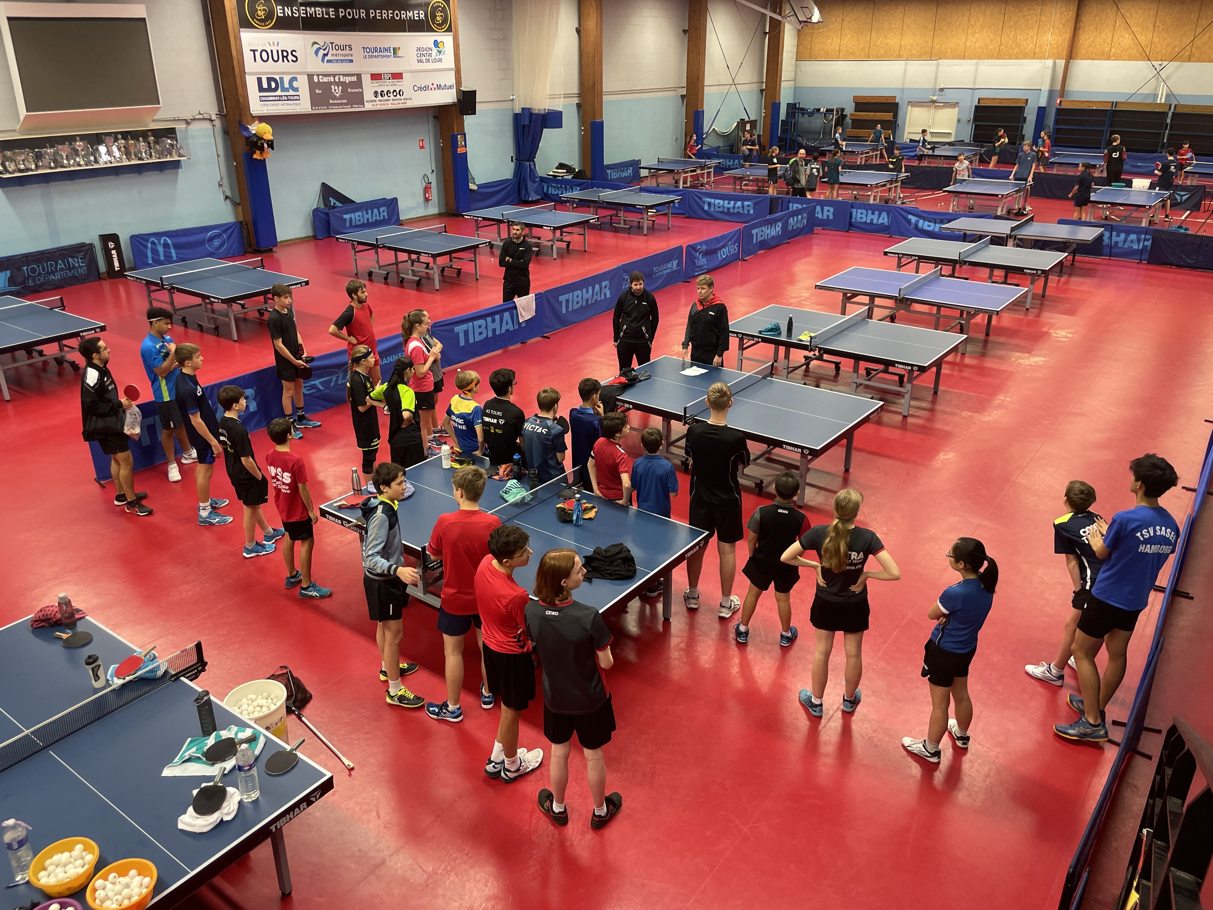 Passé le cours de géographie revenons au tennis de table. Le monde est petit et l’ami de Claude Bergeret, lui même bon joueur germain de tennis de table connait quelques entraineurs outre Rhin. Et c’est ainsi, après quelques appels, sms et mails, que 11 jeunes allemands et leur entraineur étaient tourangeaux du 21 au 28 Octobre 2023.